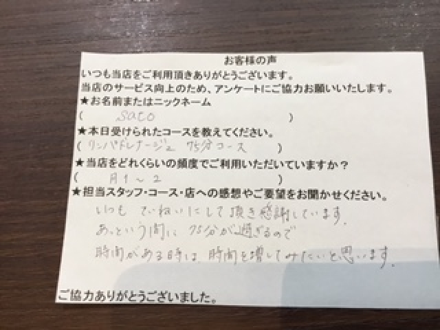 いつも親切で丁寧な対応をしていただくので、体も心もとても癒されます♪